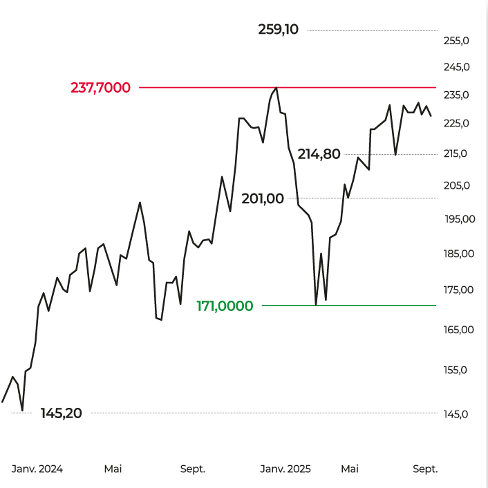 Nous sommes à l’achat avec un objectif de cours à moyen terme de 264 USD.