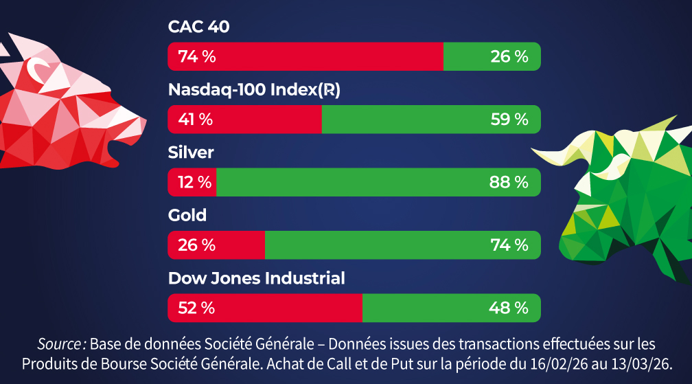 Produits pouvants intégrer un effet de levier présentant un risque de perte du capital en cours de vie et à l’échéance. Ces produits s’adressent à des investisseurs avertis possédant suffisamment d’expérience pour comprendre leurs caractéristiques et, pour en évaluer les risques et capables de suivre leur évolution en temps réel.